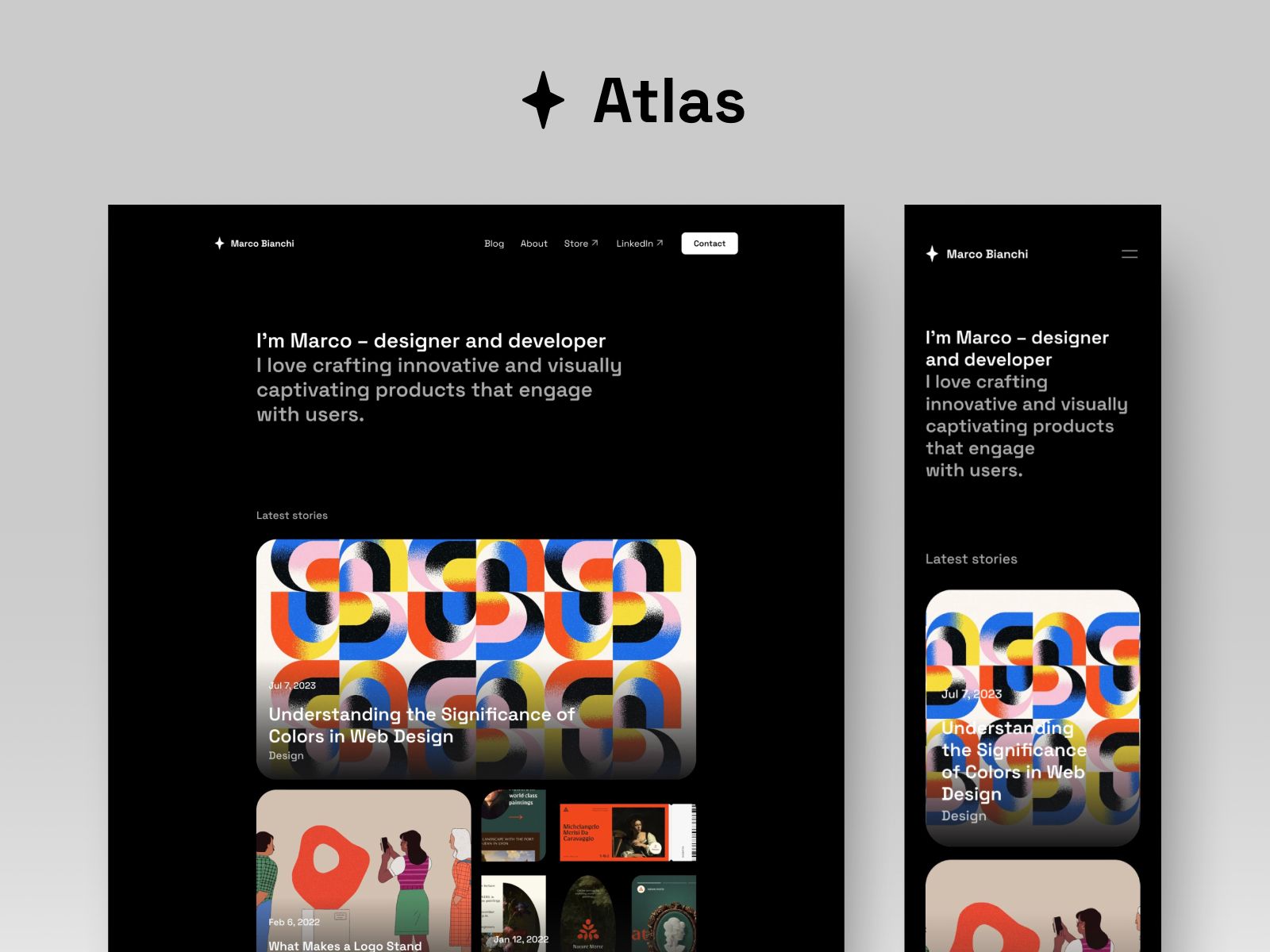 Introducing Atlas – the perfect Framer template for freelancers and creators looking to elevate their projects, articles, or sell digital products. With its compact and minimalist design, meticulously crafted to highlight your content, Atlas empowers you to attract new customers and generate revenues. Preview Features 5 unique pagesCMS readyLight and dark modeCustom post and product cardsResponsive (3 breakpoints)Fully CustomizableText styles and buttonsScroll Effects